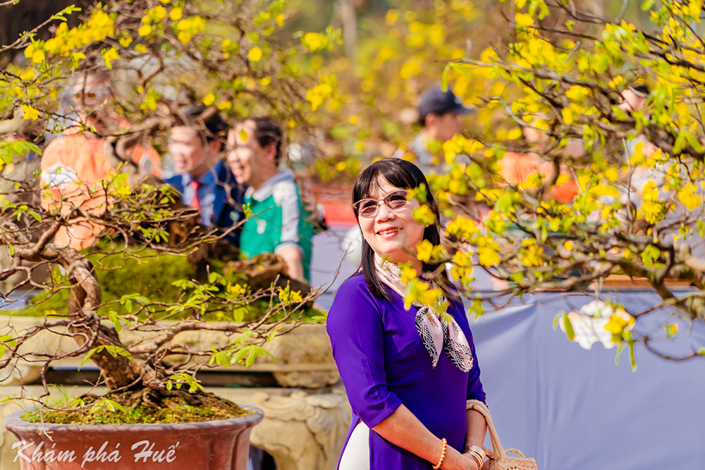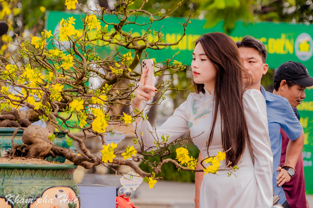 Local residents and tourists alike enjoy exploring and taking memorable photos at the Hue Yellow Apricot Festival.