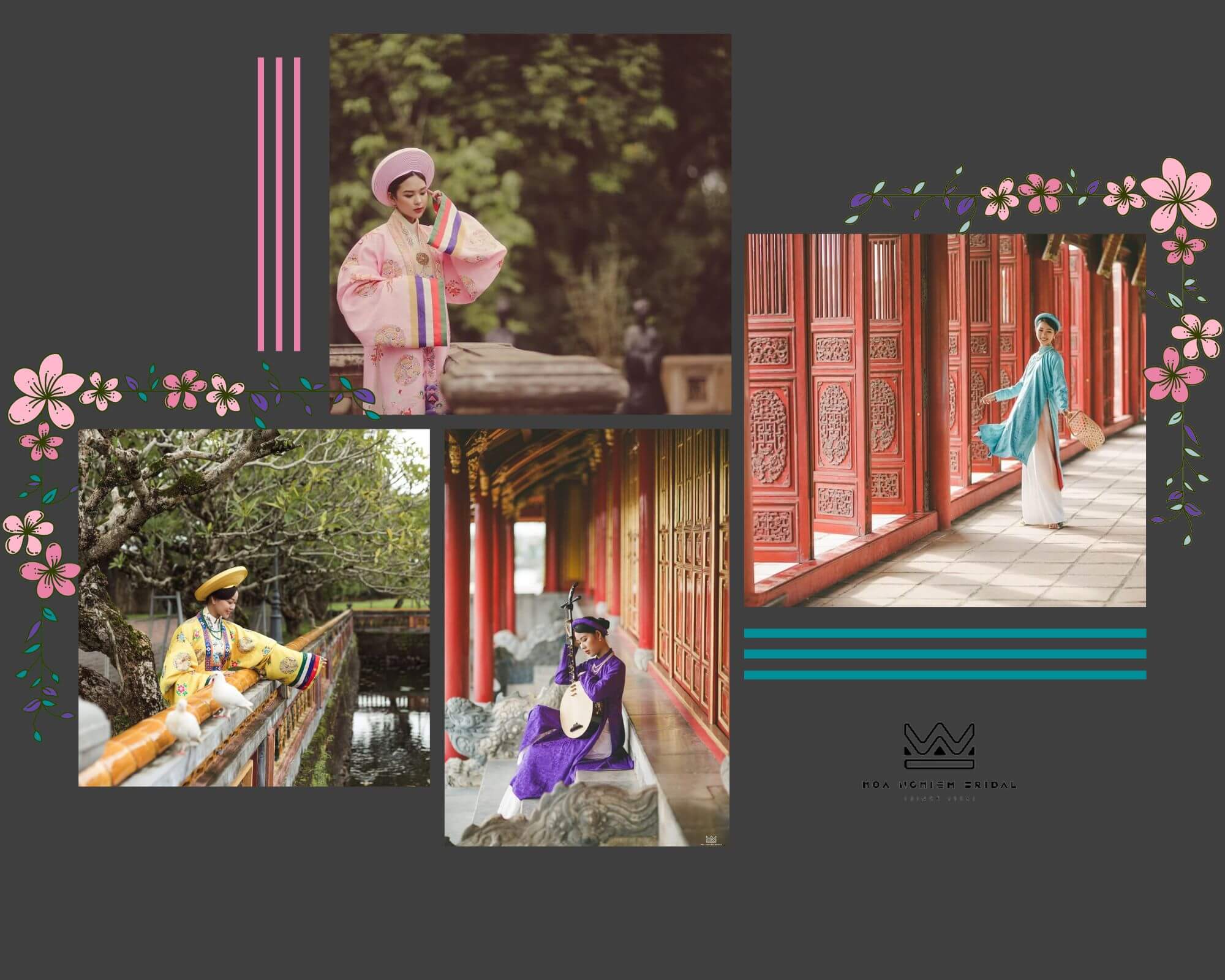 • Hoa Nghiem Vietnamese ancient costume is imbued with the traditional values of Hue Royal Court: despite the shape and color of the skin, the ancient costumes are exalted with the traditional quintessence of beauty while being worn. Therefore, the costumes of Hoa Nghiem are always guaranteed to bring sparkling, beautiful, and valuable photos. Hoa Nghiem – Vietnamese ancient costume is an address for enthusiasts to explore the thousand-year historical value of the nation.