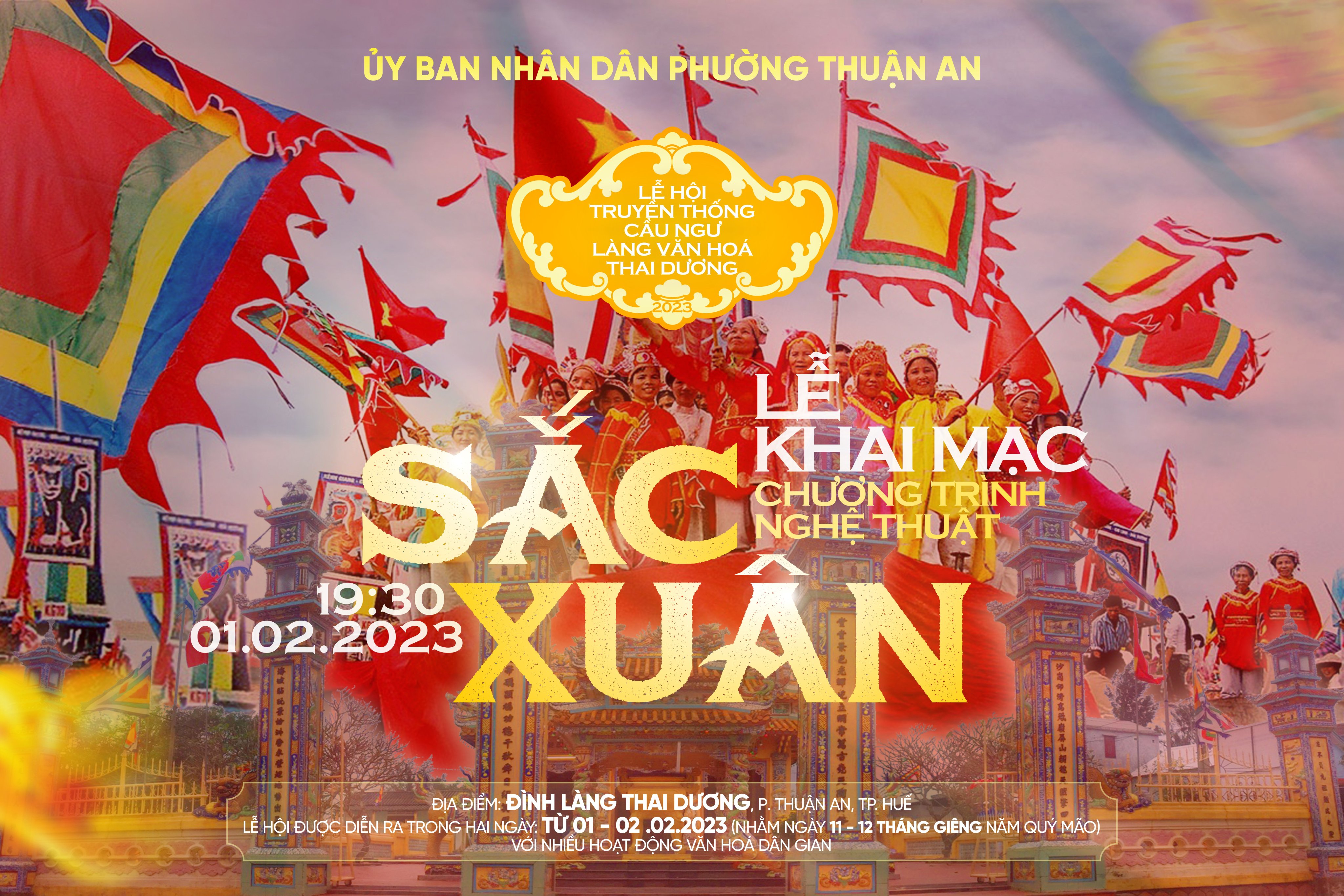 Lễ hội Cầu Ngư Thuận An, ngày 31/01/2023 đến 02/2/2023 (ngày 10 đến 12 tháng Giêng năm Quý Mão), tại Đình làng Thai Dương - phường Thuận An, thành phố Huế, do UBND phường Thuận An chủ trì.