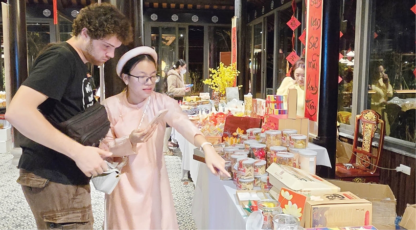 Giới thiệu sản phẩm truyền thống Huế cho du khách nước ngoài tại không gian Phủ Nội vụ
