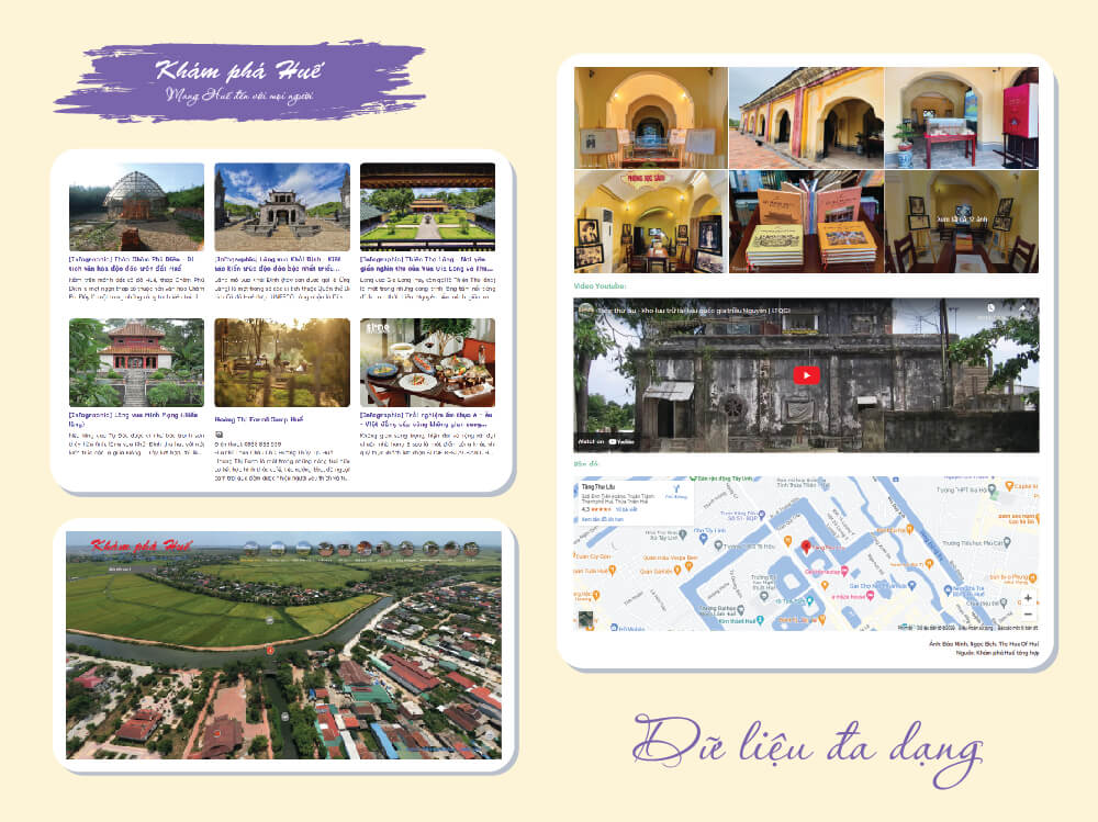 Đặc biệt, các thông tin về các điểm đến lưu trú, địa chỉ vui chơi, giải trí, các chương trình tour, gợi ý du lịch cũng như các thông tin tổng hợp được Khám phá Huế cung cấp đầy đủ và liên tục trên Trang; được tổ chức trình diễn dưới nhiều hình thức đa dạng (như Infographic, liên kết bản đồ tìm kiếm, trình diễn media không giới hạn…); tăng cường kỹ năng chuẩn SEO của Google và cho phép hiện diện ở nhiều vị trí thu hút trên trang cũng như các tài khoản mạng xã hội khác của Khám phá Huế. Đây chính là không gian số cho các doanh nghiệp trên địa bàn tỉnh có cơ hội giới thiệu, quảng bá thương hiệu của các đơn vị, doanh nghiệp trên Internet một cách chuyên nghiệp, hiệu quả và tập trung; giúp dễ dàng tiếp cận với thị hiếu và nhu cầu của người dùng; hỗ trợ doanh nghiệp từng bước xây dựng và phủ sóng thương hiệu đa kênh, góp phần thúc đẩy hoạt động kinh doanh cho doanh nghiệp.