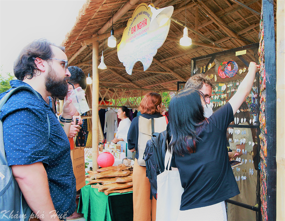 Áo dài và các phụ kiện đi kèm với áo dài thu hút sự quan tâm của du khách và người dân địa phương ghé tham quan, mua sắm