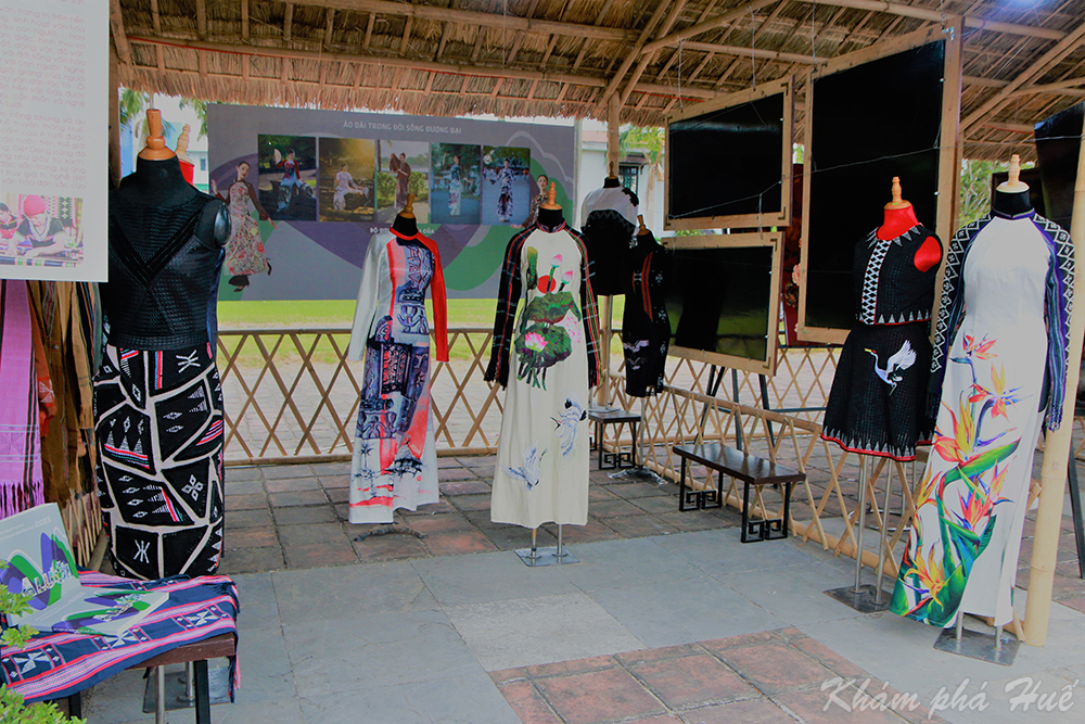 Triển lãm gồm 20 gian hàng trưng bày hàng các loại áo dài cổ phục, áo dài truyền thống Huế của các nhà thiết kế nổi tiếng cùng các phụ kiện đi kèm với áo dài, các gian hàng nghệ thuật như Trúc Chỉ, Pháp lam Huế, nón lá Huế, sản phẩm áo dài từ vải Dèng và thao diễn nghề dệt Dèng... được bài trí thêm lồng đèn Huế, diều Huế.