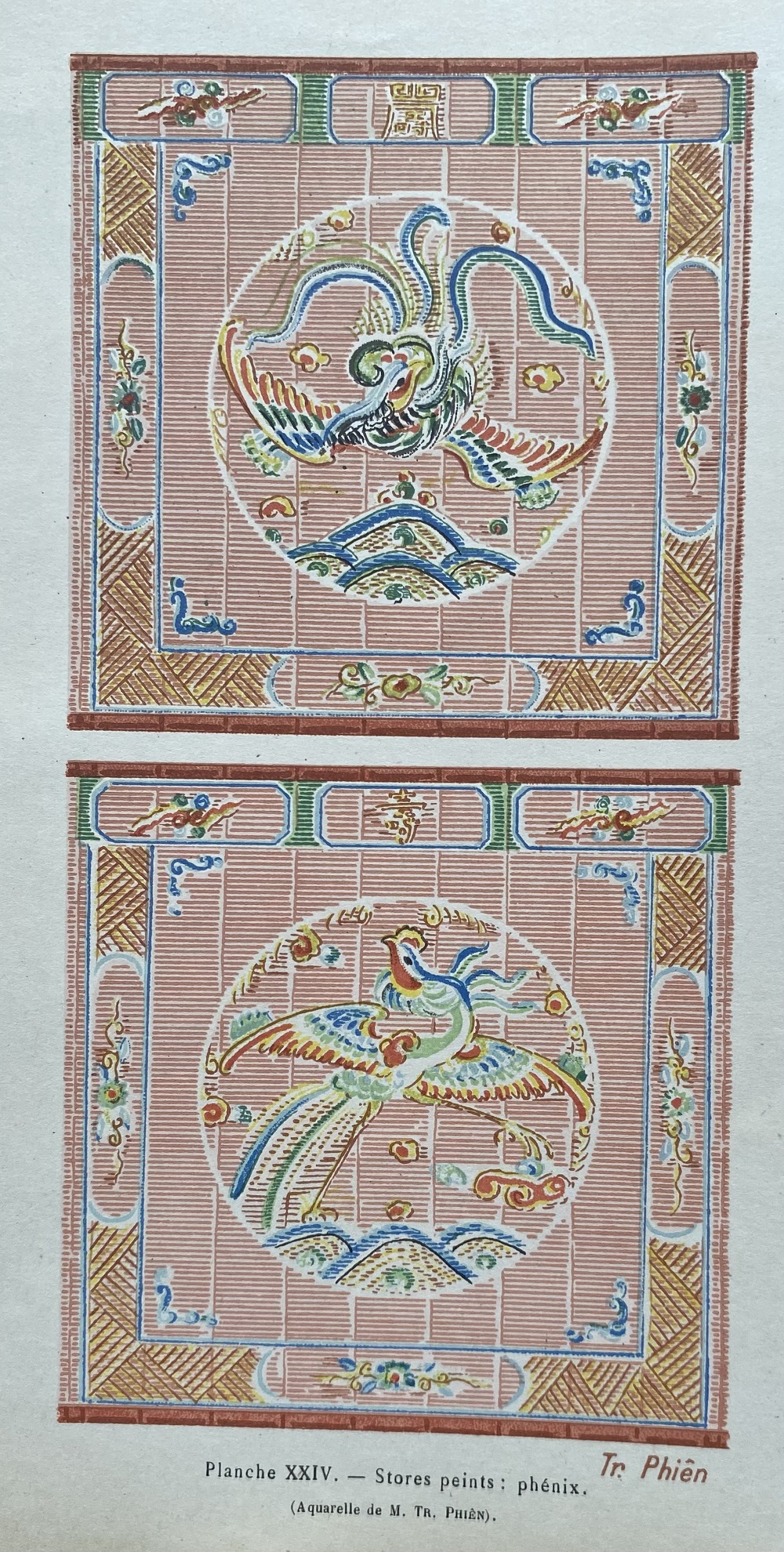 Mành có trang trí hình Phượng hoàng. Tranh màu nước Tr. Phiên.