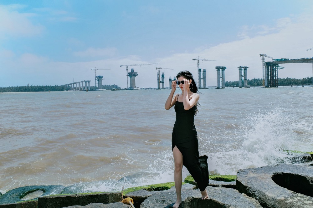 Check-in ở bãi đá thấp biển Hải Dương (Ảnh: Hồ Sỹ Phước)